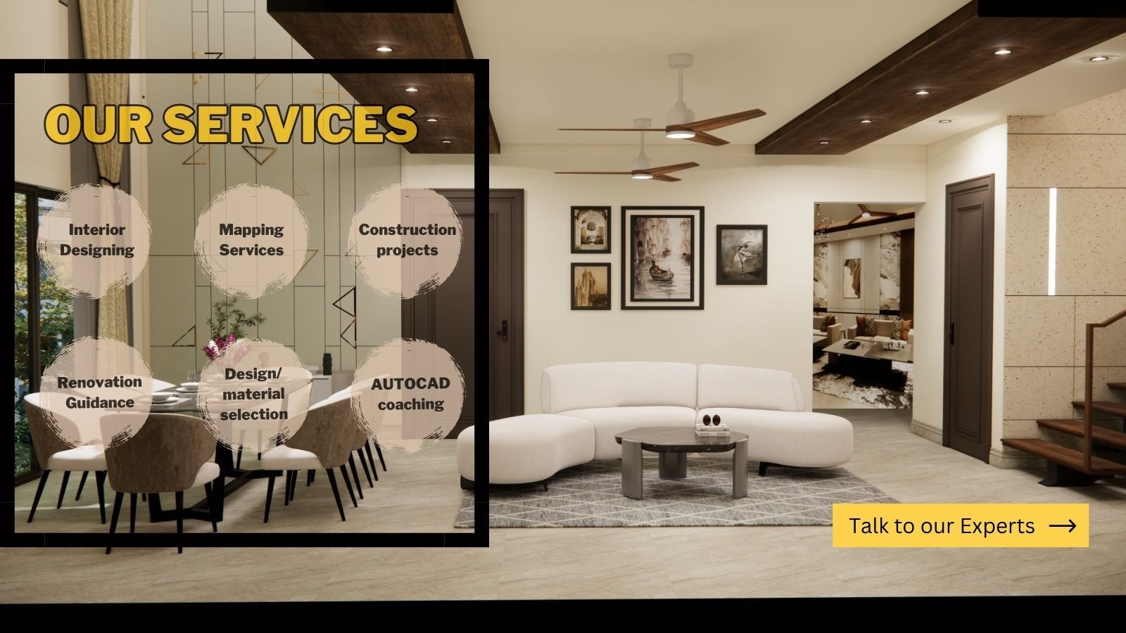 | 2D Floor plan 2D Interior layout 2D Exterior Elevation Cost Estimate 3D Exterior Elevation 3D Interior view Structural Drawings Electrical Drawings |